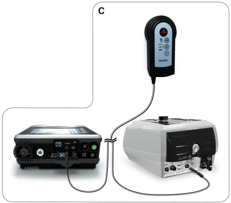 - Connect the Remote Alarm as per the set up instructions in Connecting to the Ventilator.