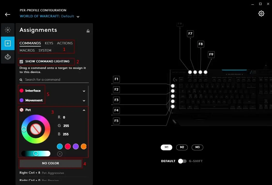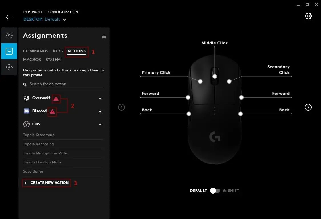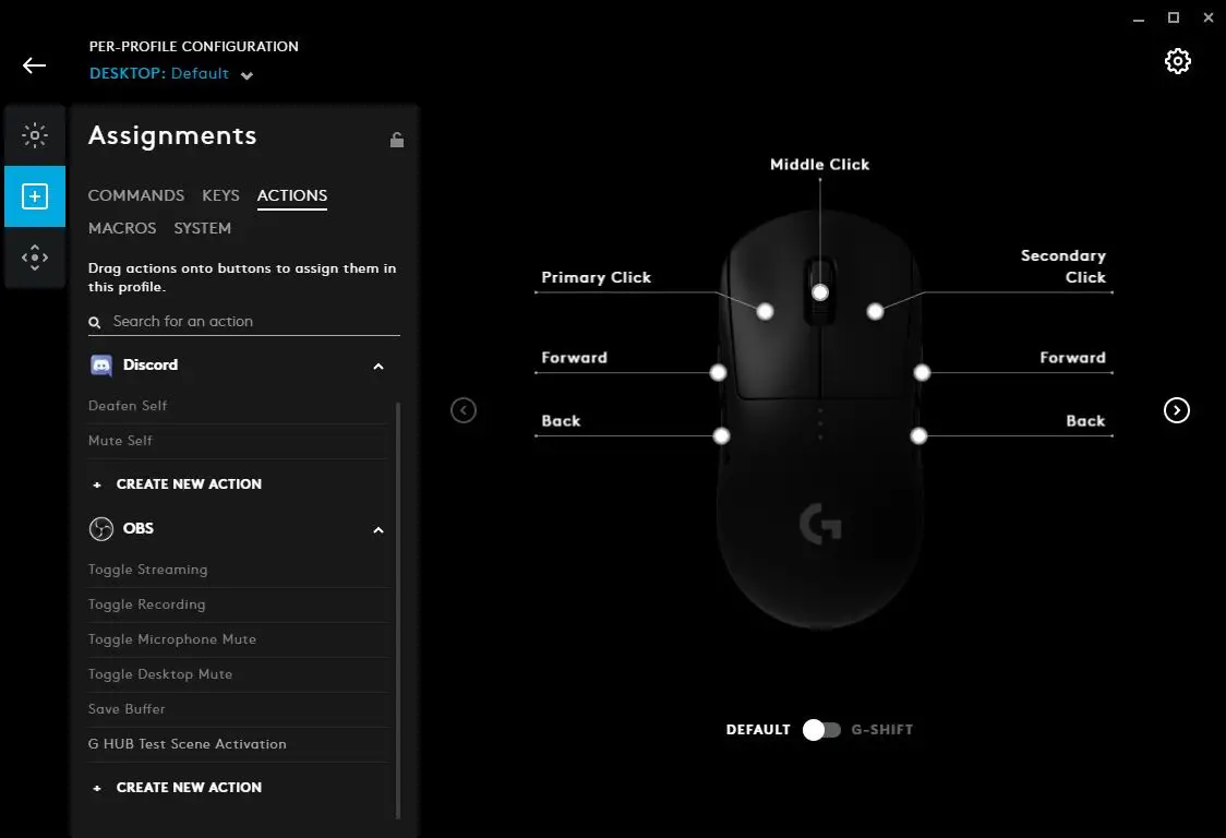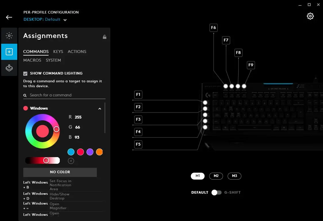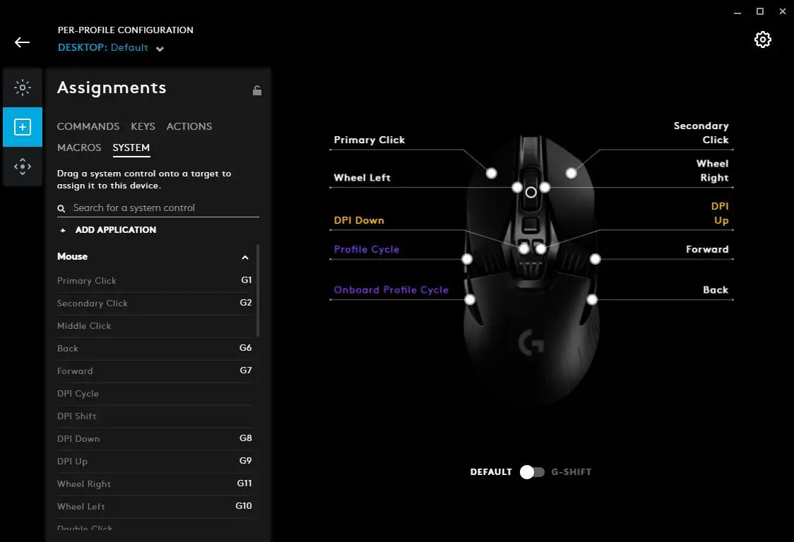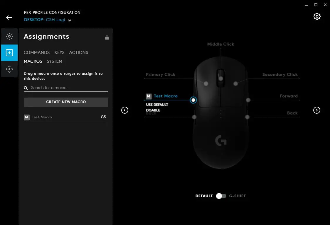 - USE DEFAULT. Selecting this will reset the button/key back to factory default, with no programming. If it is one of the five buttons on a mouse (LMB/RMB/MMD/Forwards/Back) then it will behave as normal. Otherwise it will be a non programmed G Key as default.