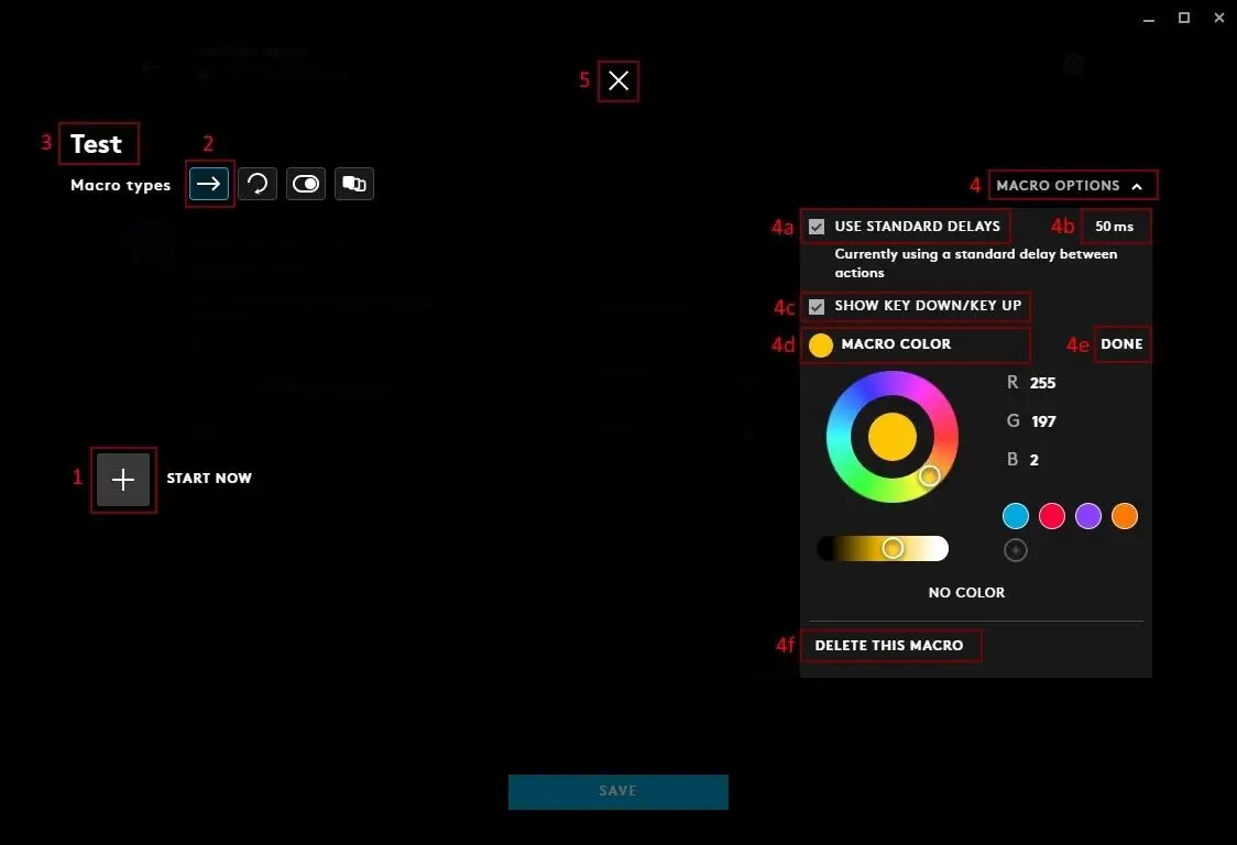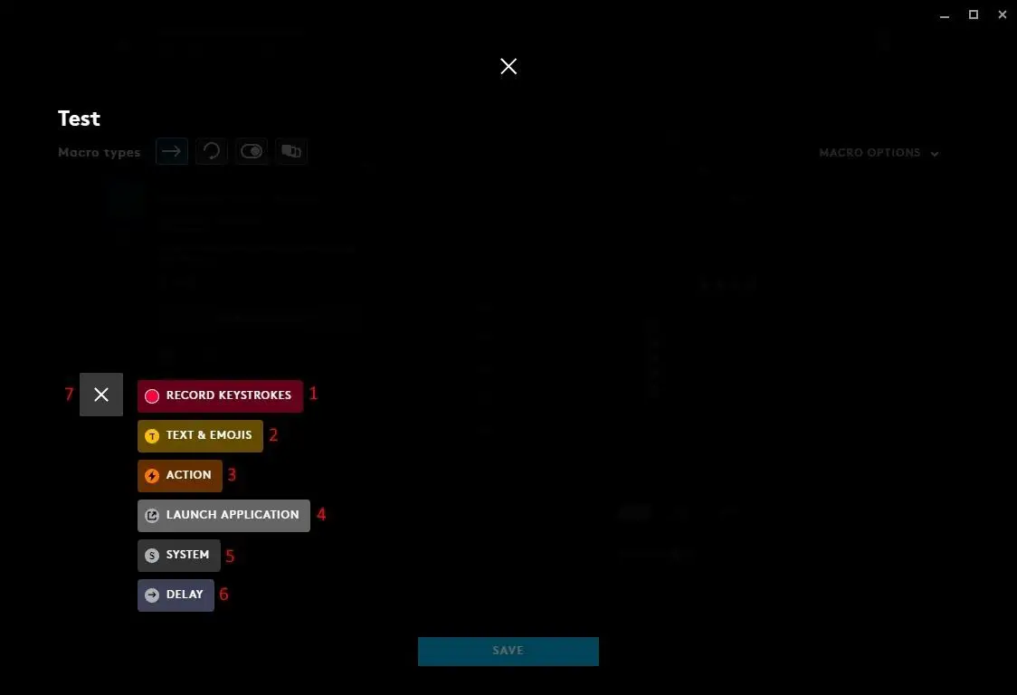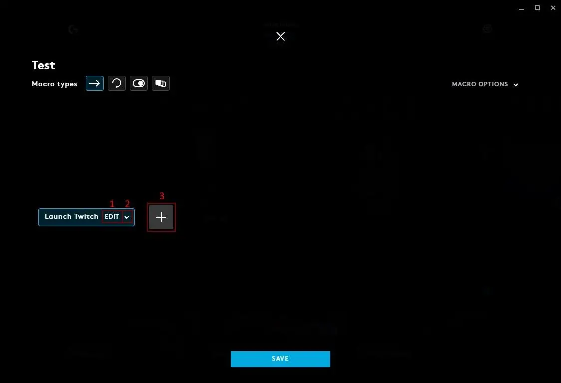 - Click MACROS to view macro that are assigned to that Game/Application for use in your Gear Assignments. You can also click the + to create a new macro.