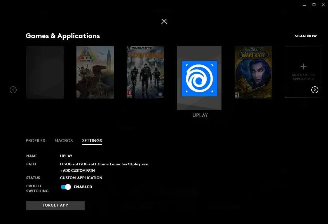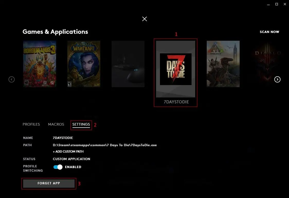 - SCAN NOW. Click this button to rescan for games/applications you have missing from your list or recently installed.
