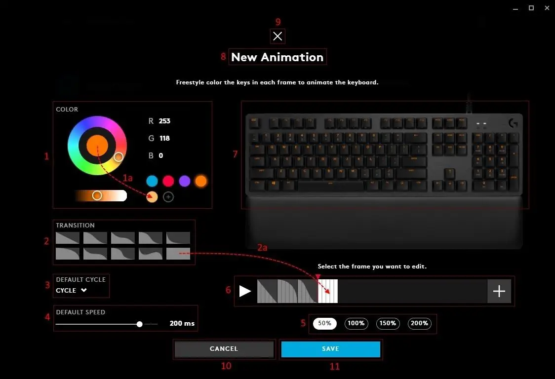 - RESET. Click RESET to revert back to the default colour settings. For Breathing, use the SPEED slider to adjust how quickly the effect happens. With 1000ms (1s) is the quickest and 20000ms (20s) is the slowest.