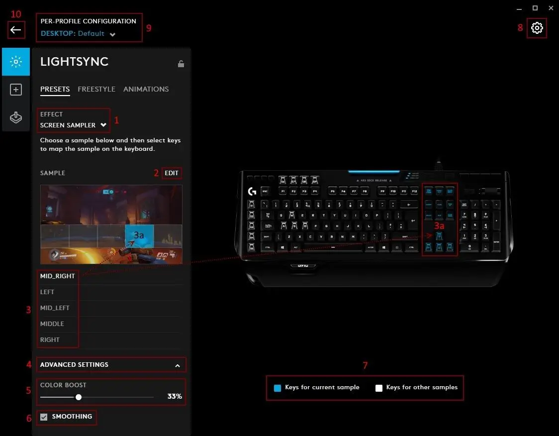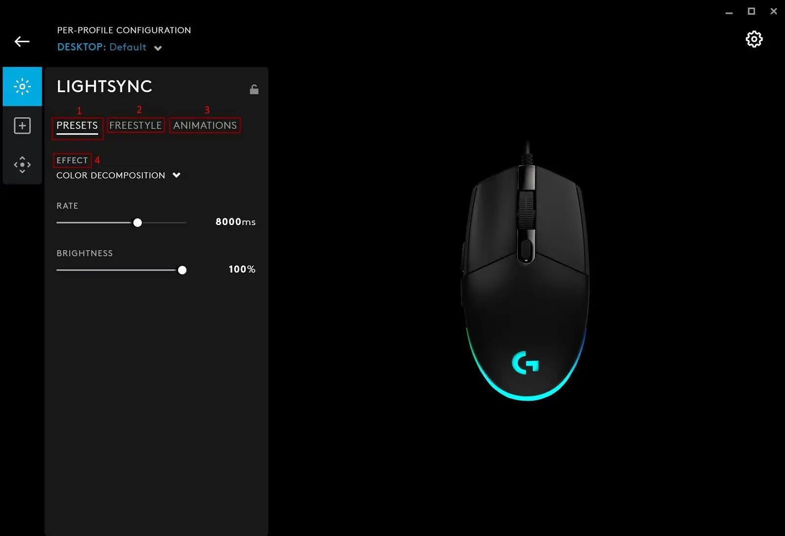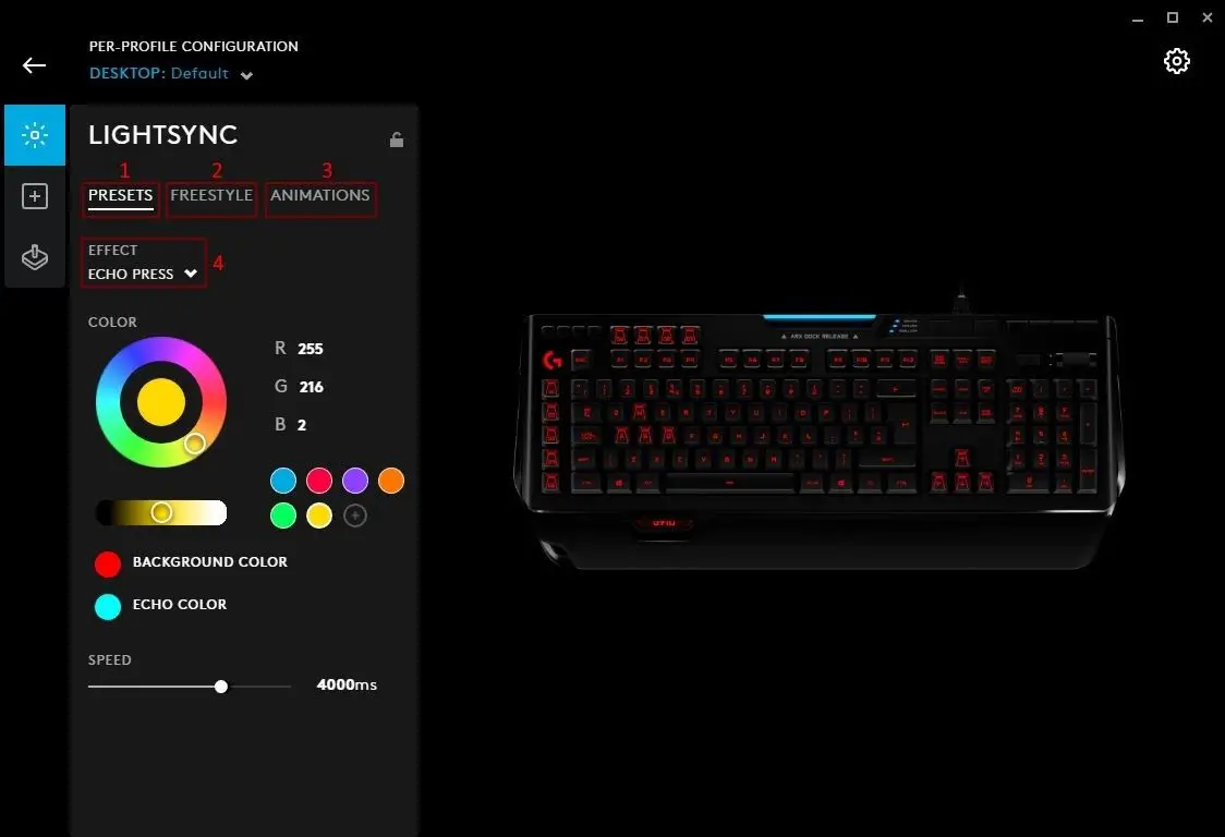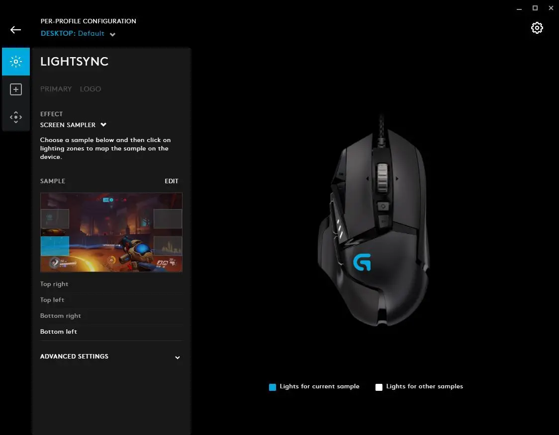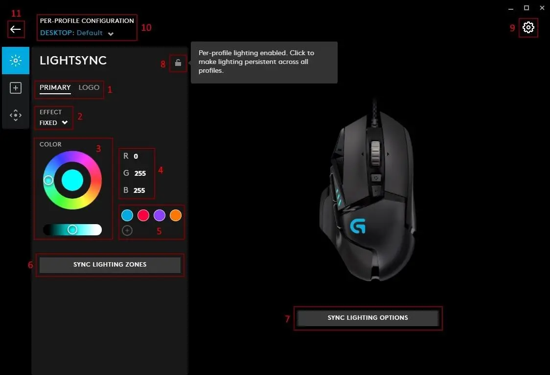 - Lighting Effects profile page. Click here to take you to the Lighting Effect Download page. Here you can download new lighting profiles for your devices. Click the G logo in the top right hand corner to get back to the homepage.