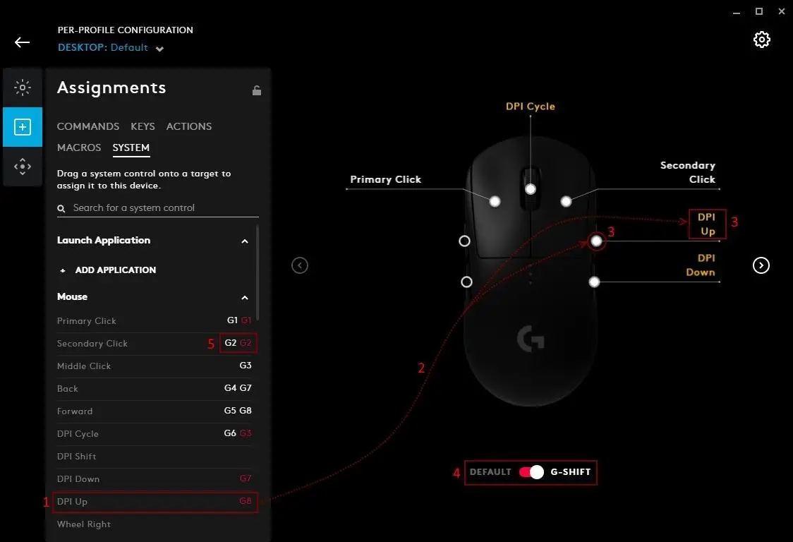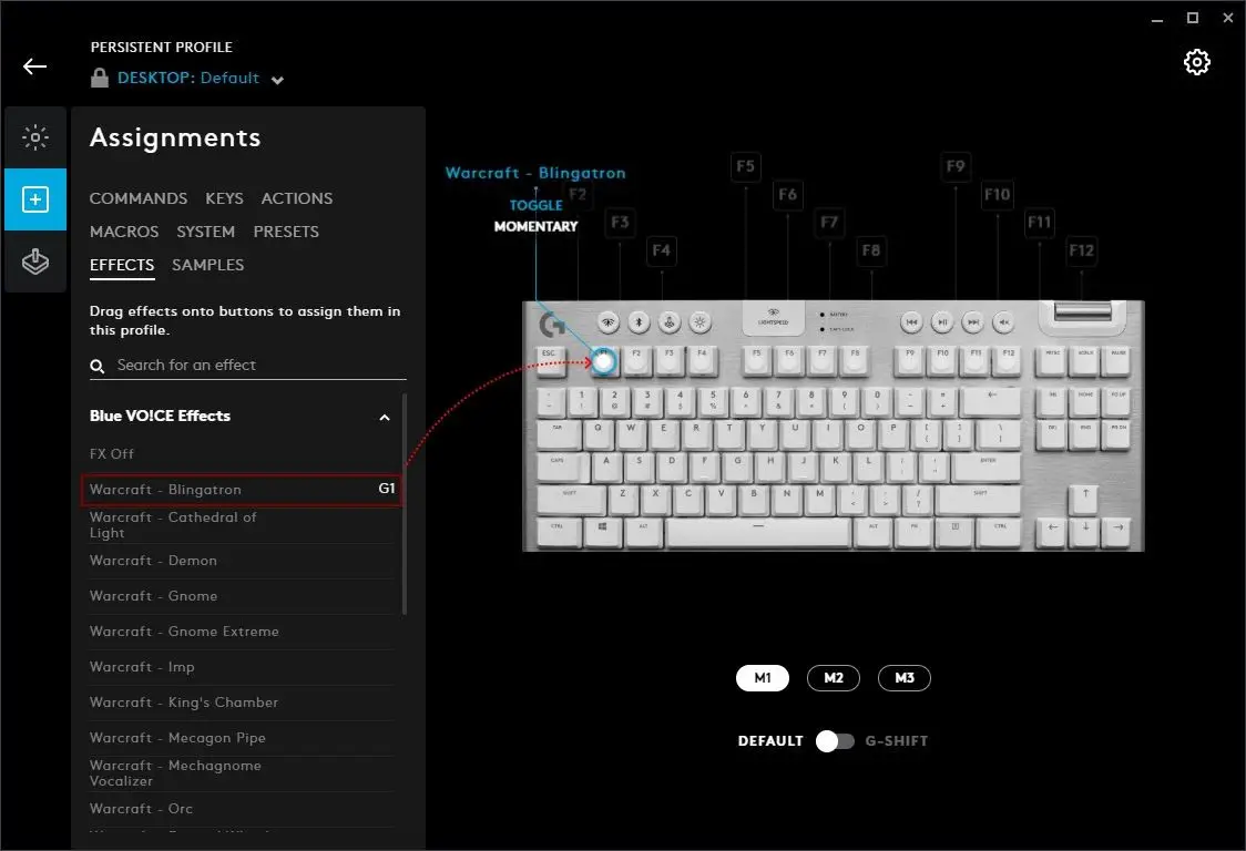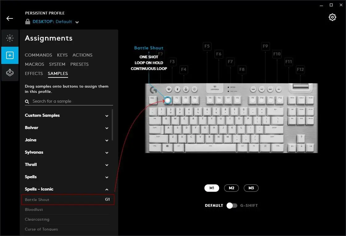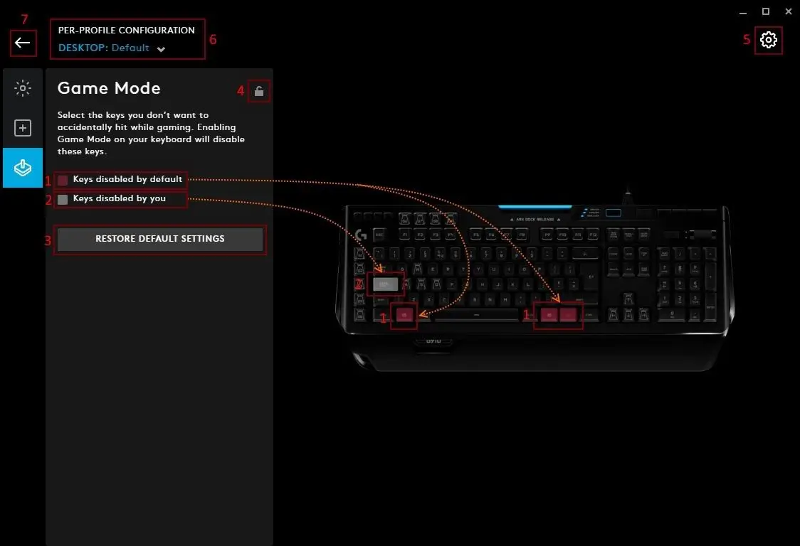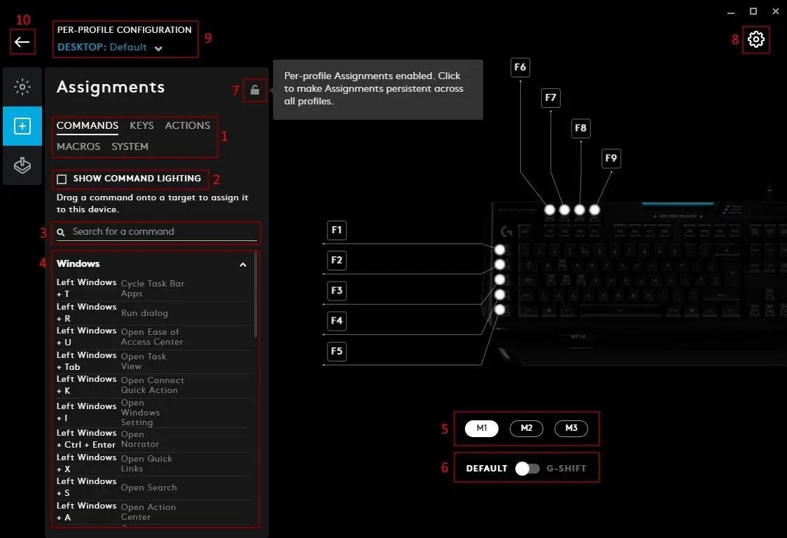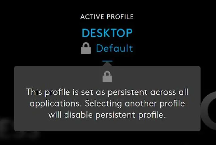 Typically, when G HUB is first installed, your Desktop default profile might be the persistent profile, until you start creating some new profiles and you remove this lock so profile switching is activated.