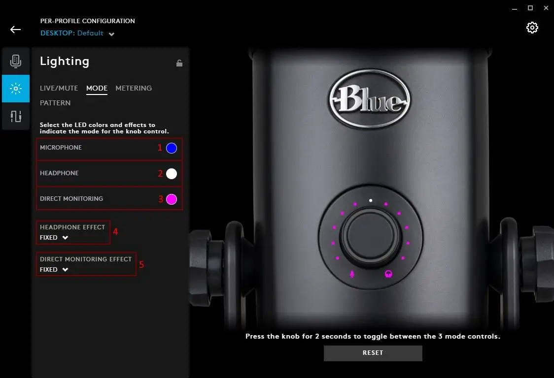 NOTE: For MICROPHONE MODE, there is no effect you can choose, as it will default back to default monitoring after 2 seconds. The effect is FIXED.