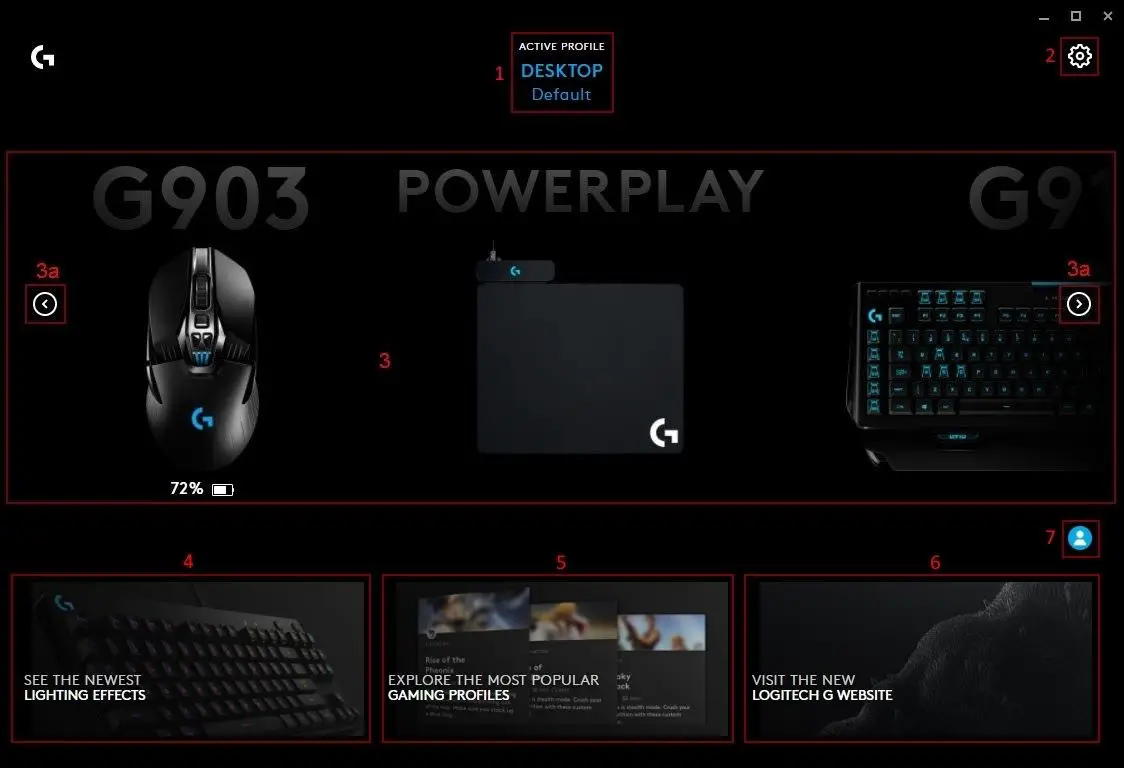 - Open G HUB and click on the profile on the top of the home page. The Games & Application profile page opens.