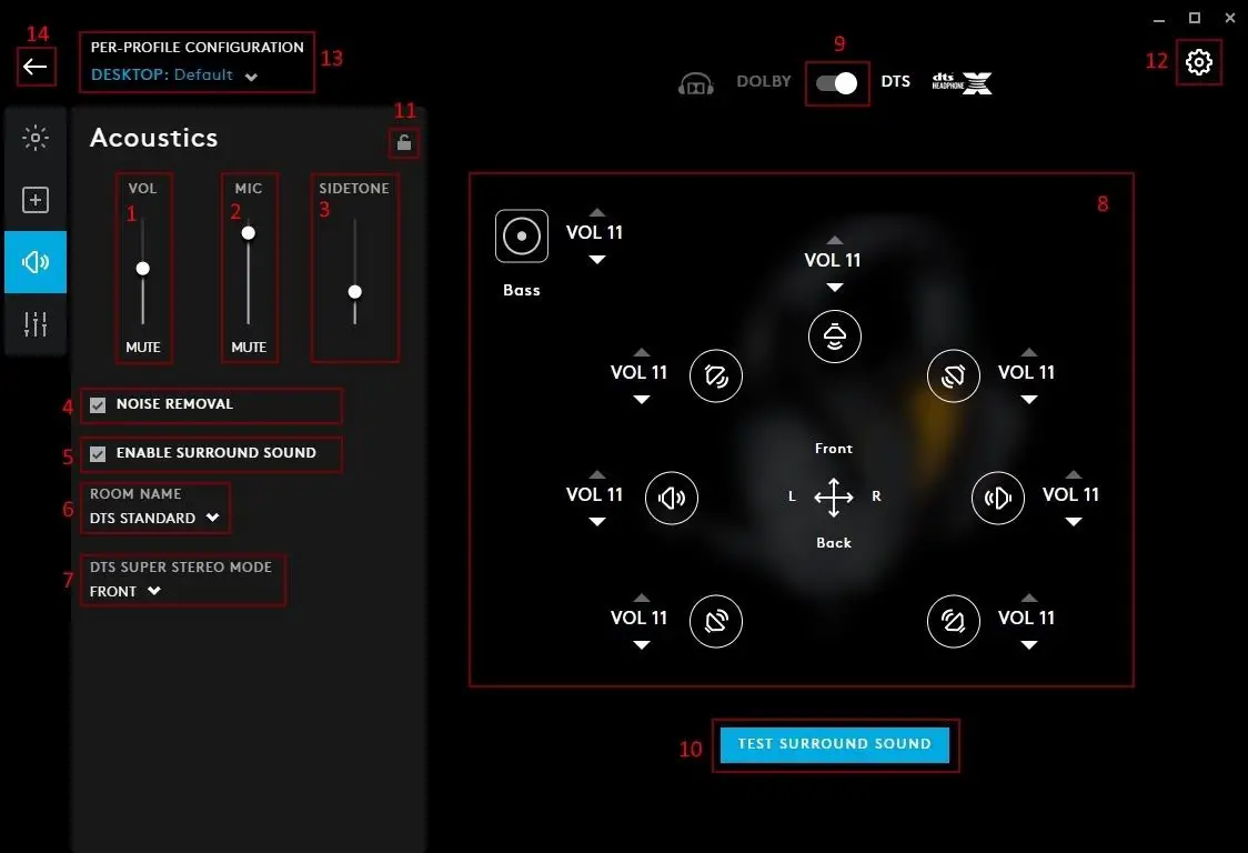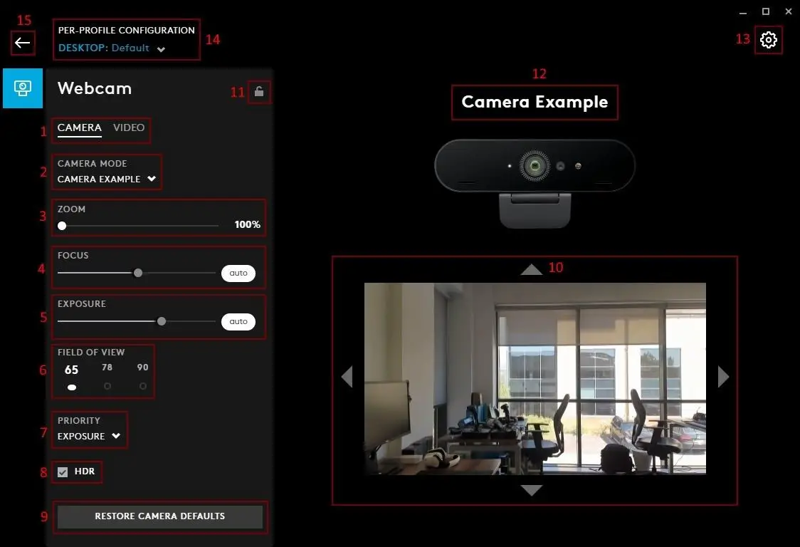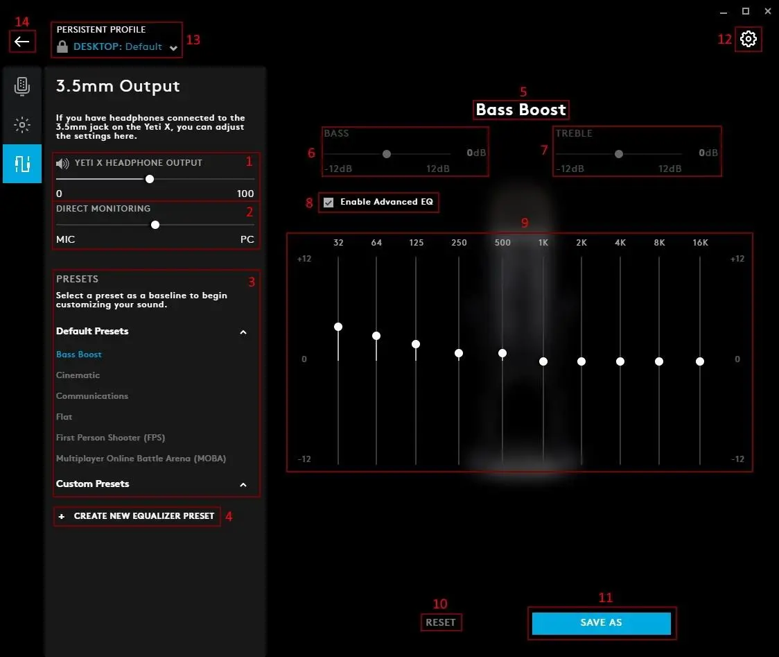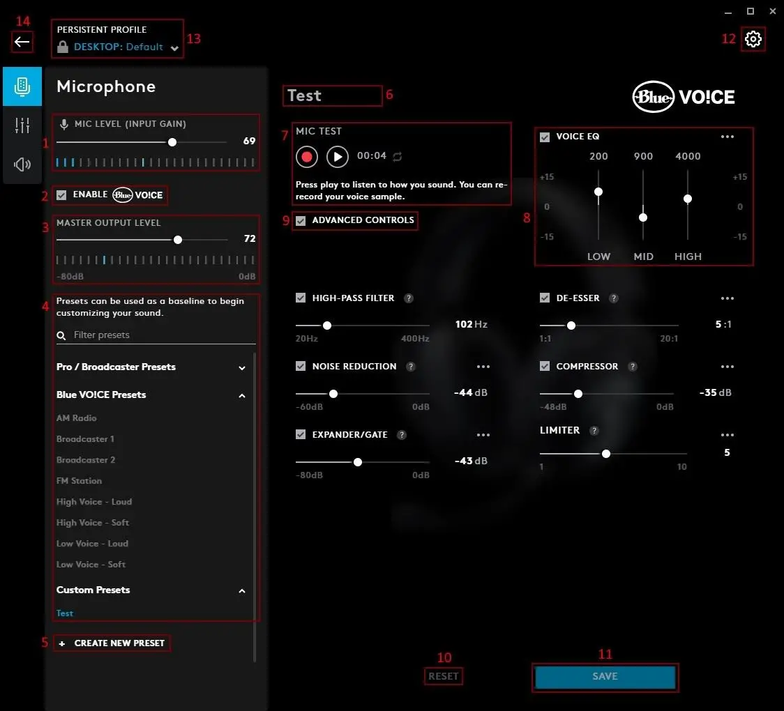 - DESKTOP Profile. There will always be a default called DESKTOP which can be configured. You can add different user profiles to by clicking the + icon (11)