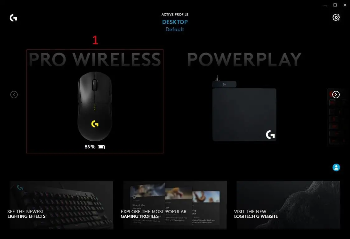 - Select between the APP SETTINGS, MY GEAR and ARK CONTROL (explained later) tabs. Clicking MY GEAR will show all your devices that have been connected and downloaded to G HUB. You can then click on the Gear to take you to the GEAR SETTINGS page.