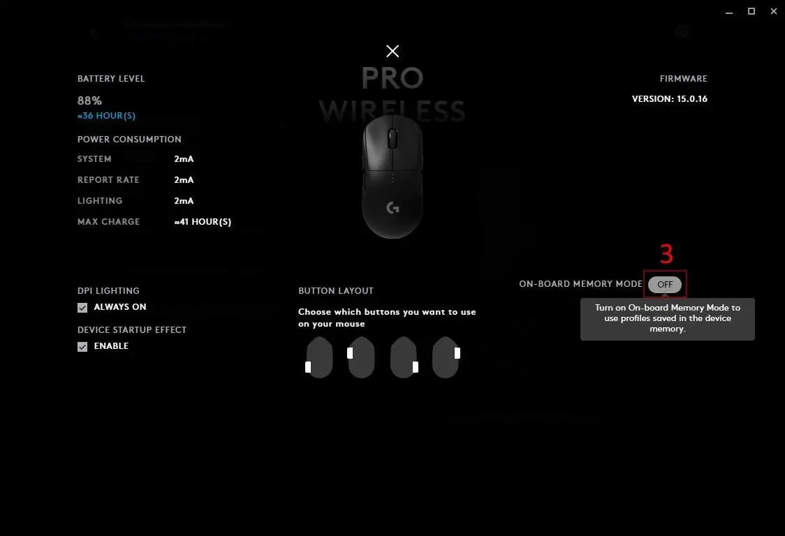 Note: If you select this to OFF, then you will need to manually run G HUB to allow profiles to activate. If you find profiles are not working, check you have G HUB running as a process in your computer Task Manager (Windows) or Activity Monitor (Mac). If there isn’t a G HUB process running, then try running G HUB.