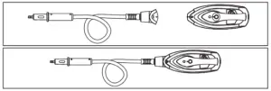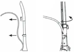 - Insert the power supply cord into the cord holder located at the top of the extension handle as illustrated and then insert the power supply cord into the upper cord wrap.