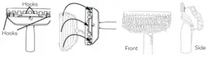 Note: Do not cover the squeegee blade. Make sure to hook up the coral cloth to all hooks on the cleaning tool frame so it doesn’t slip or fall from the frame during use.
