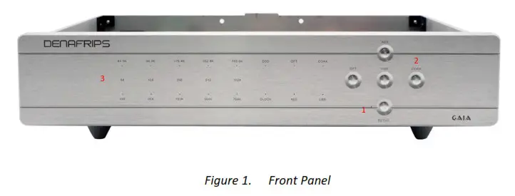 Thank you for purchasing the DENAFRIPS GAIA DDC. It is a state-of-the-art Digital to Digital Converter, one of the finest available on the market. The flagship DDC, built upon the success of the DENAFRIPS Digital Know-How. GAIA DDC isolates and buffers the digital signal, re-clock them via the local OCXO. The cleansed, ultralow jitters digital output can be connected to any external DAC. It is the answer to the Digital Audio System. The top-quality performance of the GAIA DDC is for the serious audiophile who seek the very last bit of ultimate refinement.