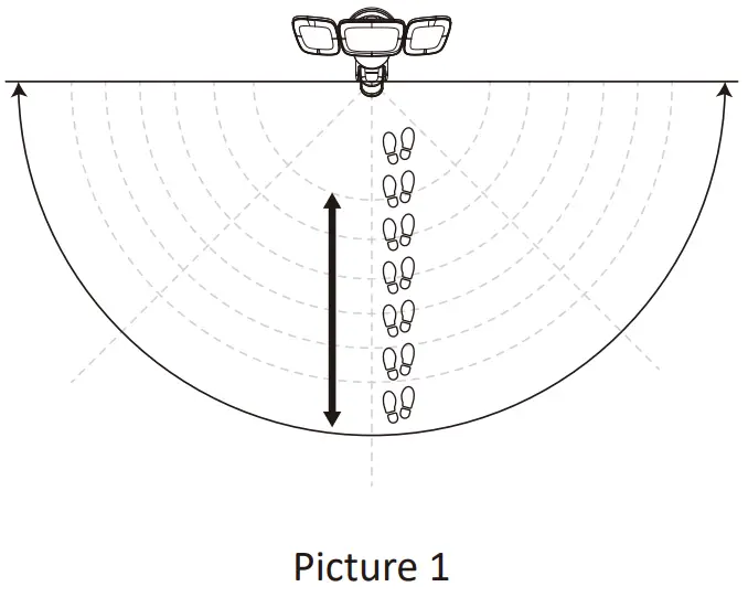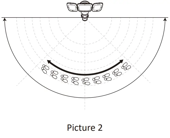 - Install the height of the light fixture not lower than 5.5ft, to avoid disturbance from small animals on the ground within detection range.