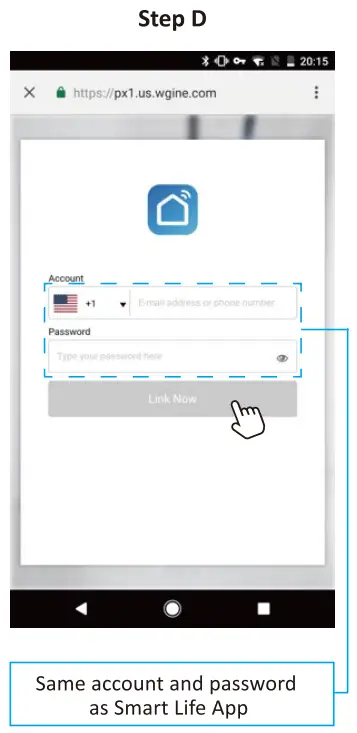 Step D: Enter your Smart Life App account and password to bind Smart Life account to Google Assistant.