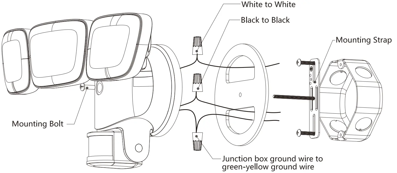 - Install the mounting strap as shown with two screws that fit your juntion box.
