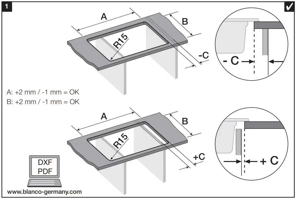 | BLANCO NOVA 8 S | +2 mm | 1136 mm | 476 mm |