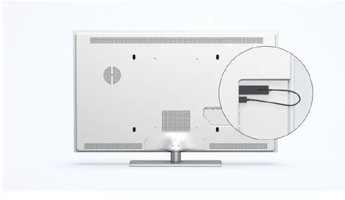 Plug the USB and HDMI from the Microsoft Wireless Display Adapter into your HDTV, monitor or projector.