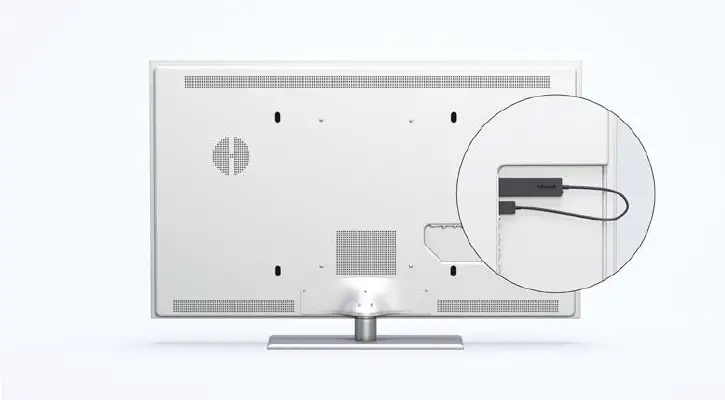Microsoft Wireless Display Adapter plugged into an HDTV