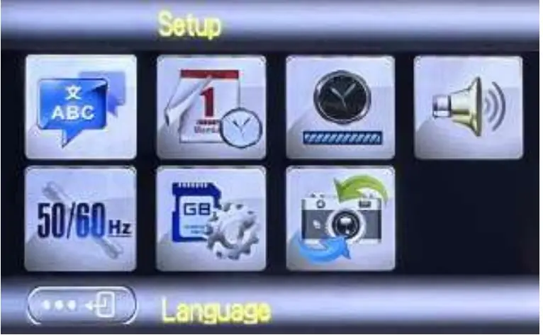 - Press the mode button 3 times in the still image mode to enter the camera system settings.