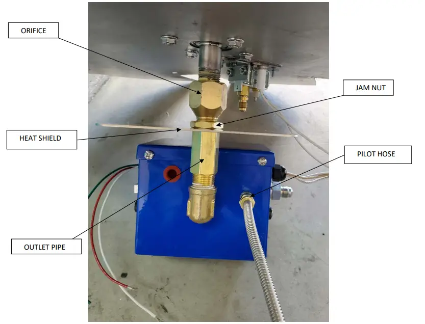 - 4. Take the flexible stainless steel pilot hose and connect it to the control box fitting. Secure with wrench but be careful not to over-tighten as it may damage the brass thread.