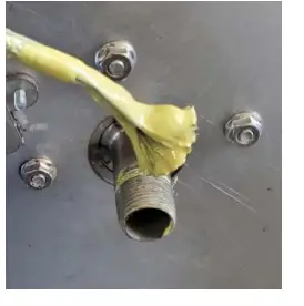 - Place pipe thread sealer onto the new orifice threads covering, be sure to cover the last three threads well.
