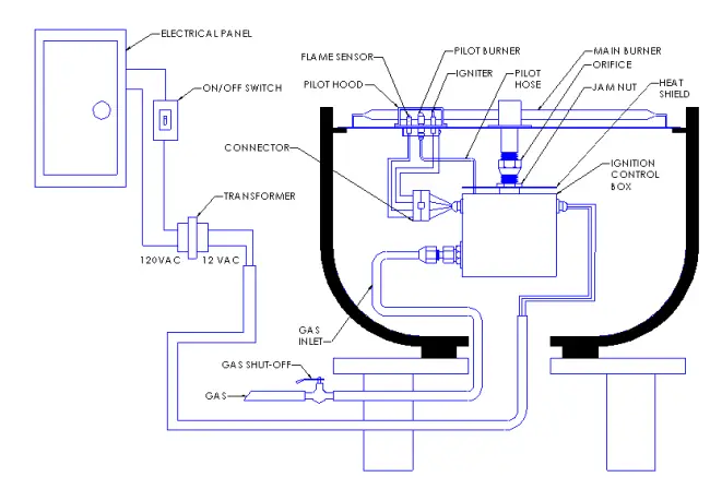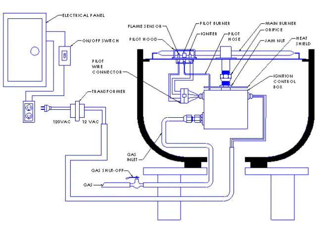 - The main burner must have a flame port directly in front of the pilot for the ignition system to light the main burner and sense the flame.