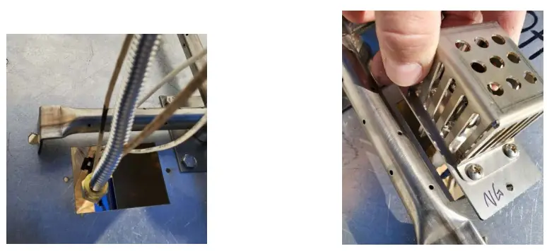 - Using a wrench, unscrew the burner orifice from the pipe, keep a hand under the control box so that it doesn’t fall when the orifice disengages.