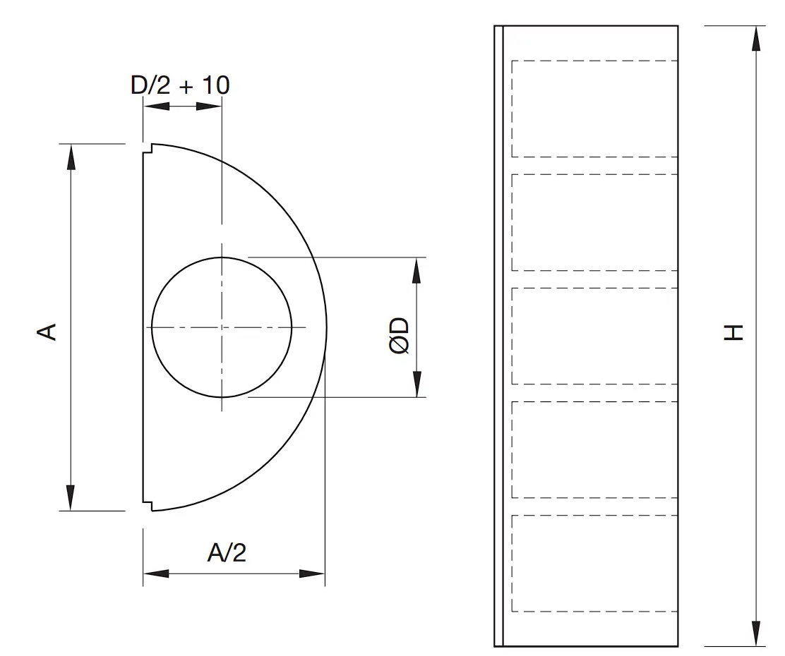 Comdif CBA is a semicircular perforated displacement diffuser for installation against/on a wall or column. Behind the perforated front plate, CBA is equipped with individually adjustable nozzles, making it possible to alter the geometry of the near zone. The diffuser can be turned and has a circular duct connection (MF measure), so the diffuser can be connected at the top or bottom. The diffuser is suitable for the supply of large volumes of moderately cooled air.