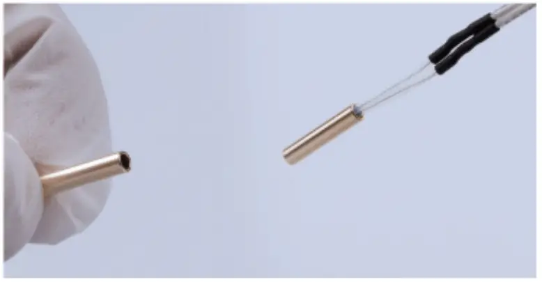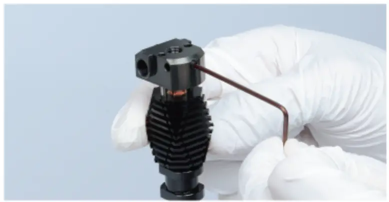 6. If you’re using glass ball typed thermocouple, put the thermocouple into the brass sleeve in the accessories kit (brass sleeve is shown in the picture below), then put it into the heatblock, and lock it tightly with the head screw.