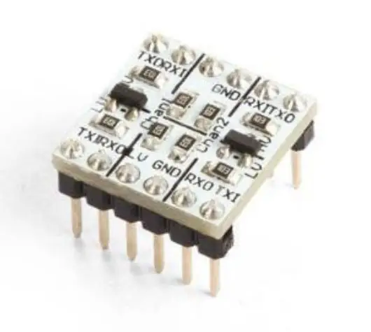 The outer pins serve as inputs and outputs for channels 1 and 2. Each channel has one voltage divider and one MOSFET shifter.