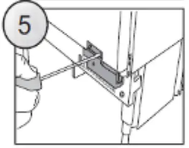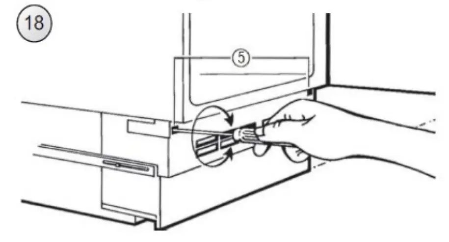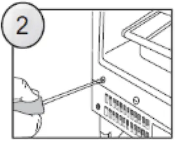 - Remove the two screws, which attach the lower hinge to the appliance door (Fig. 5). Take special care and hold the appliance door with the other hand.