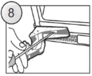 - Screw the upper and lower hinge on the opposite side of the appliance body using suitable screws (Fig. 8). Upper hinge should be mounted on the other side of the appliance as the lower hinge. The lower hinge should be mounted on the other side of the appliance as the upper hinge.