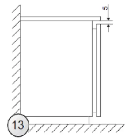 The distance between the furniture board and the underside of the worktop should be 5 mm (Fig. 13).