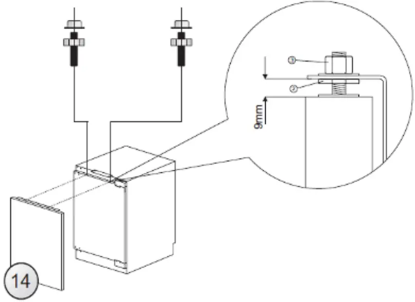 Attach furniture board with the fixed mounting bracket to the appliance door. Secure the furniture board with suitable nuts (item 3, Figure 14).