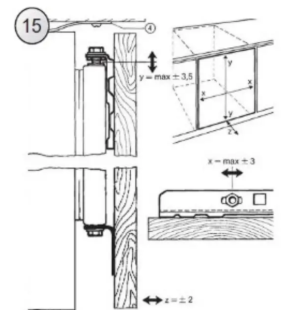 Make sure the furniture board assembly is positioned correctly relative to the appliance (Fig. 15).