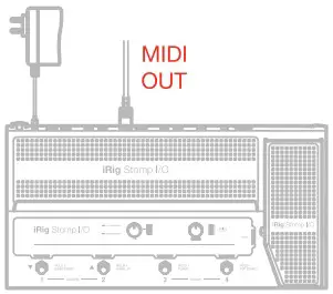 With no device connected, the iRig Stomp I/O can be used to send MIDI messages thru the MIDI OUT port. Messages sent are the same of generic MIDI controller, but all the MIDI messages are routed to the MIDI OUT port.