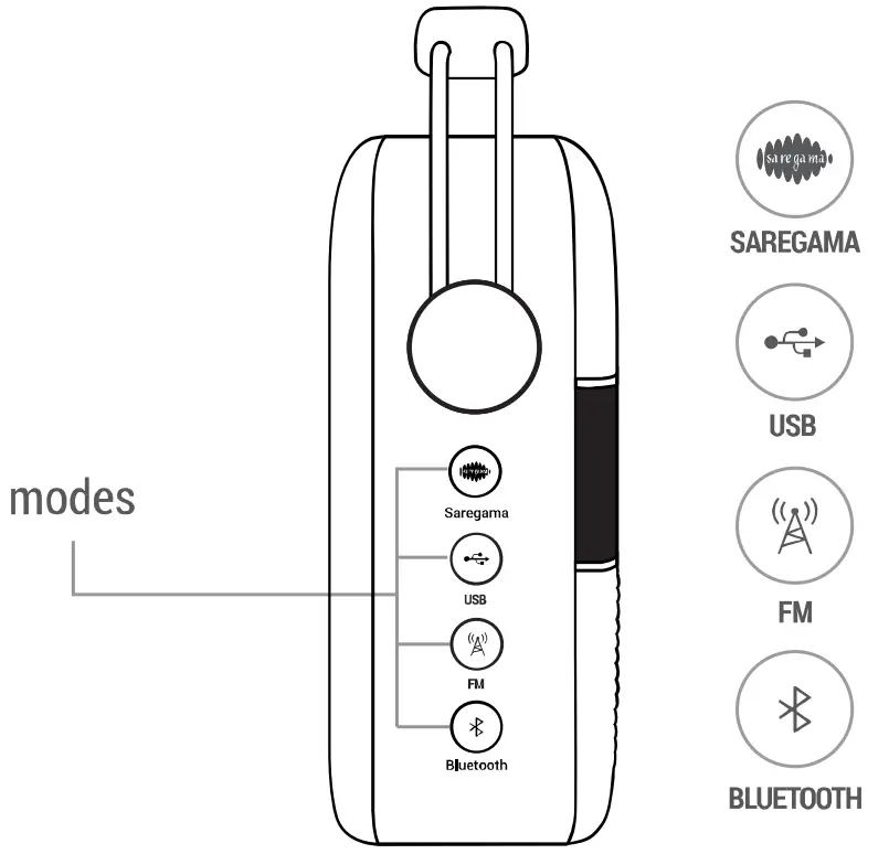 Note: We recommend that you do not put the unit on charge while listening to FM as it will interrupt the signal - BLUETOOTH**: Pair your mobile phone / tablet with Carvaan. Enjoy songs stored on your personal device on Carvaan speakers