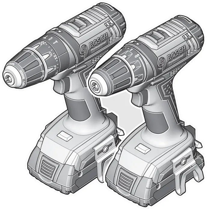 ![]() | GSR 18-2-LI/GSB 18-2-LI: Cordless screwdriver/Combination cordless drill Grey-marked area: Handle (insulated gripping surface) |
