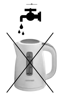 - The kettle may only be used for heating water up to the maximum indicated level. If the water exceeds the recommended maximum level, hot water may splash out. SCALDING HAZARD!