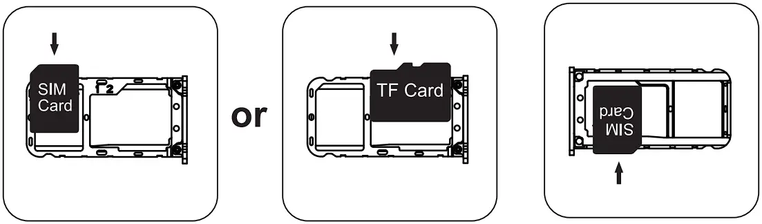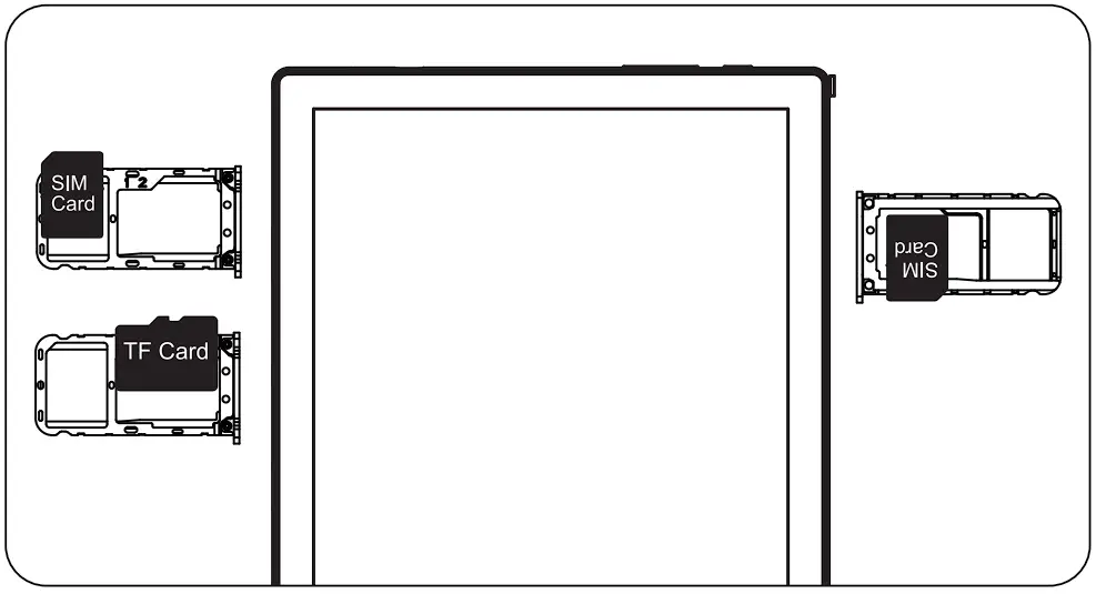 - Take out the card slot and place 2 Nano cards or a Nano card and TF card with the metal side facing down. Ensure the bevel angle of the card slot and the SIM match.
