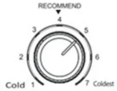 Note: It is not recommended to set the temperature control knob at the “Coldest” position for a long time.