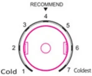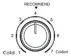 - The temperature gets gradually decreased as you dial the temperature control knob switch from the position “1” to “7”.