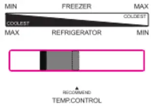 - When you need to strengthen cooling of the fresh food compartment, dial the temperature control knob switch in the Coldest direction, so as to extend the compressor running time, with the temperature decreased accordingly.