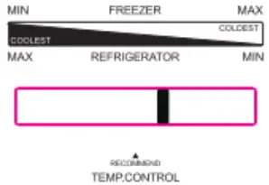 - When the temperature mode keeps unchanged, adjust the air regulating rod from left to right, the fridge temperature gets increased while the freezer temperature decreased.