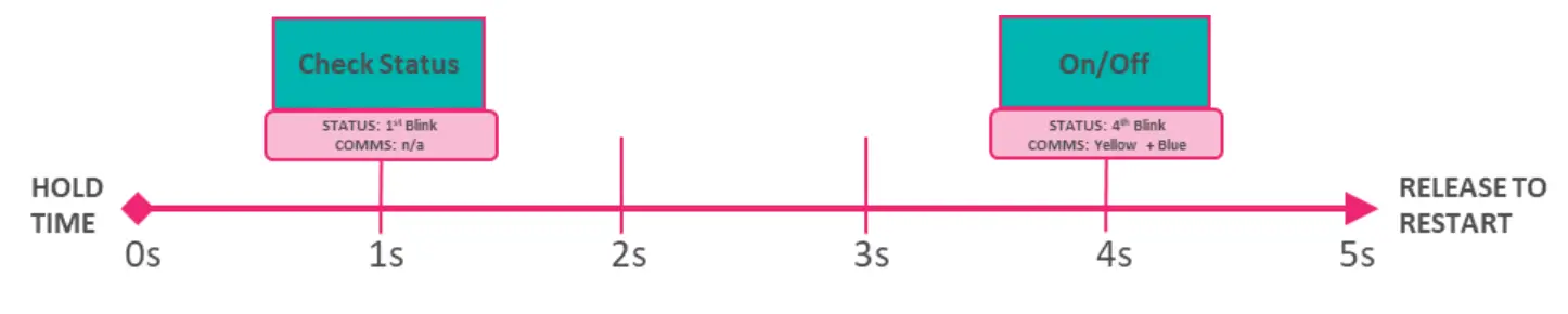 | Green Blink/Blue Blink | Initialisation | The device is first initialising and will return to its previous state. Only seen when power is first connected. | ![]() | |