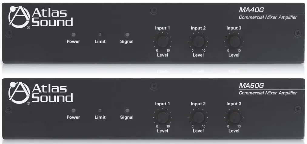 The AtlasIED MA40G and MA60G are the perfect choice for distributed business paging and background music (BGM) systems, small to medium speech privacy systems and in applications where music on hold (MOH) plus paging is required.