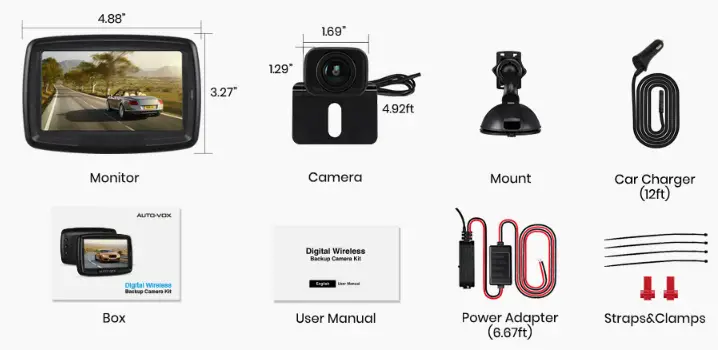 - Excellent car compatibility (suitable for vehicles under 33 feet, or you may buy an extension cable B07BNG6XHZ to increase its wireless range).