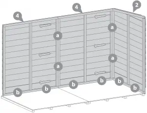 a). Place the back panels and the right gable onto the floor and secure in place using 6x50mm screws.