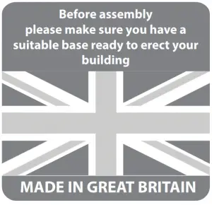 Ensure the base is level and is built on firm ground, to prevent distortion. Refer to diagrams for the base dimensions, The base should be slightly smaller than the external measurement of the building, i.e. The cladding should overlap the base, creating a run off for water. It is also recommended that the floor be at least 25mm above the surrounding ground level to avoid flooding.