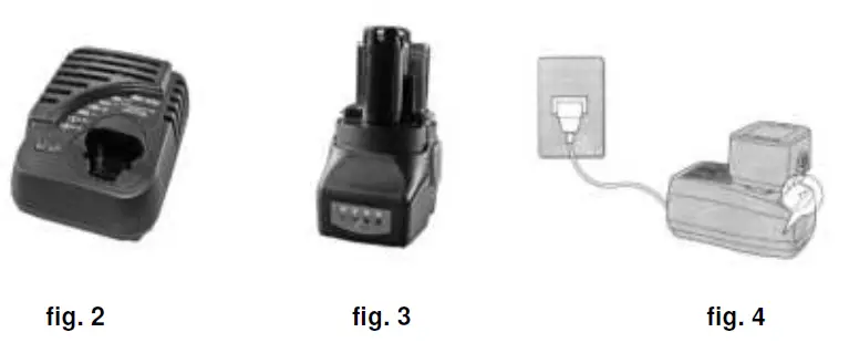 - After charging the battery, disconnect the battery charger from the power supply (fig. 4).