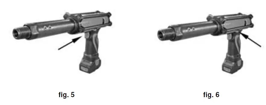 - If the equipment stops during a pushing operation and cannot be removed, take the battery cartridge away and carry out the unblocking maneuver manually keeping the tool body firmly and turning the cylinder anti-clockwise.
